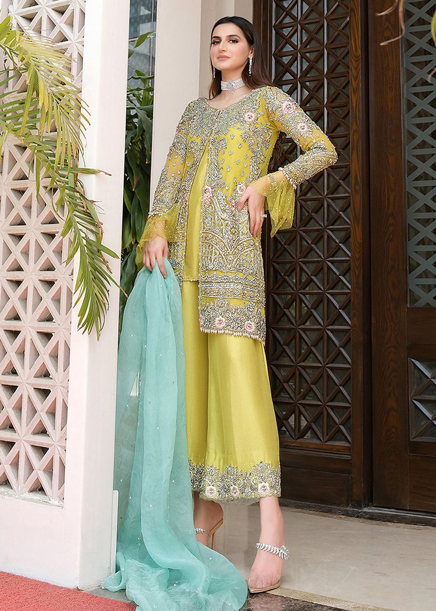 Product Description: A stunning blend of elegance and sophistication, featuring an embroidered net shirt paired...
