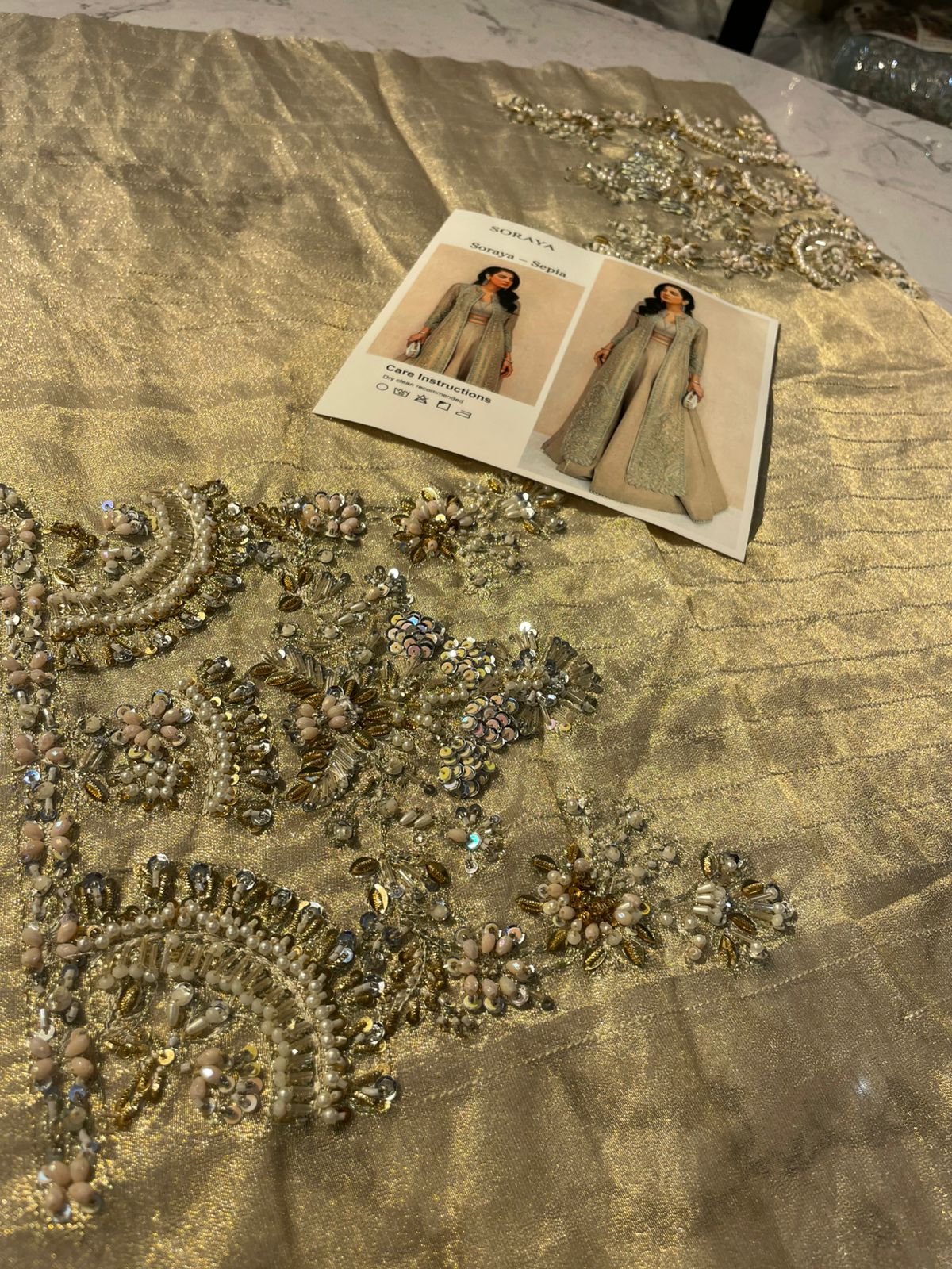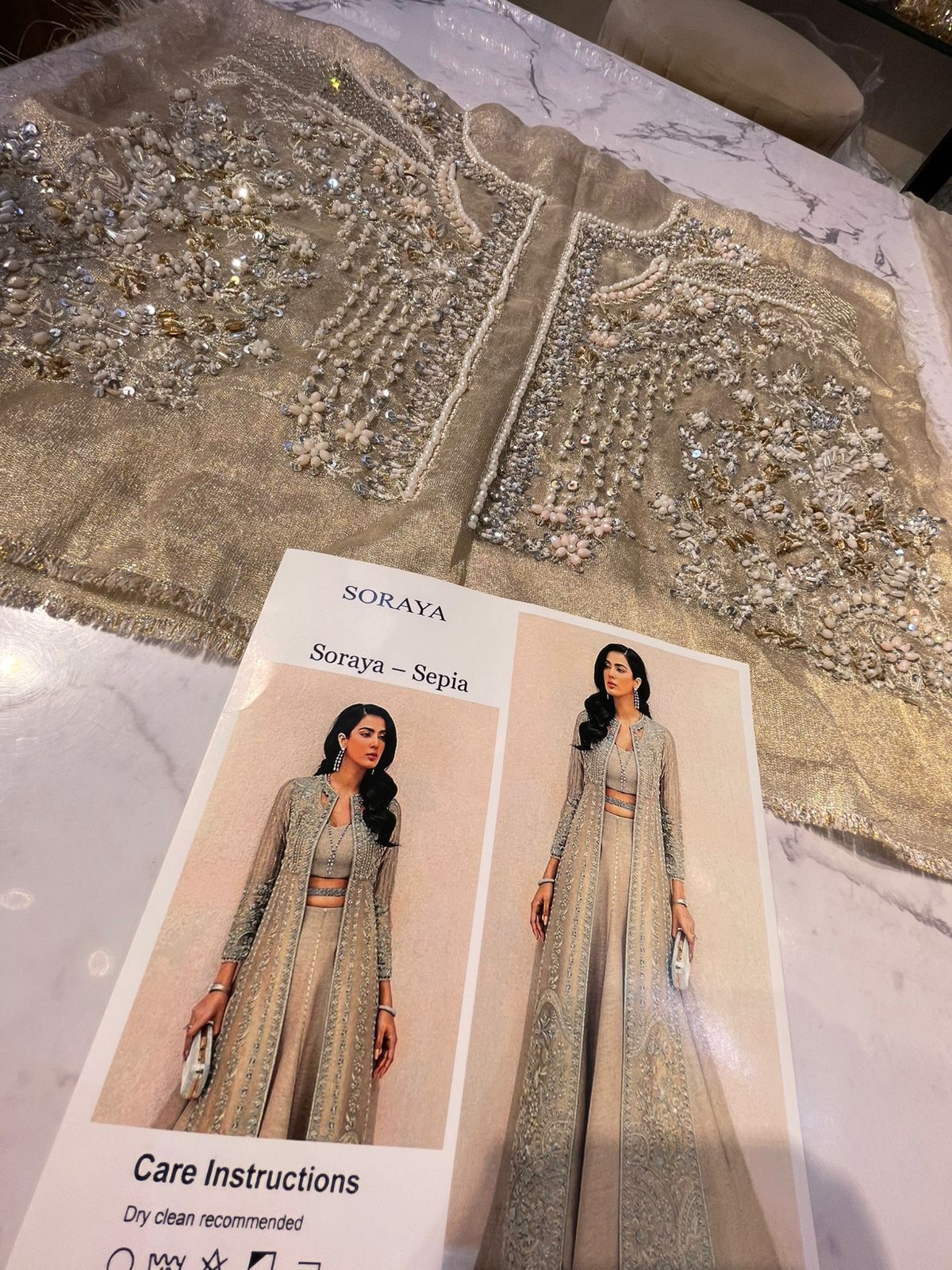 Mishal takes pride in its handcrafted party wear. Due to the delicate nature of our items, slight variations may occur (5-10%) in design, color, or embellishments. We recommend dry cleaning for all garments.