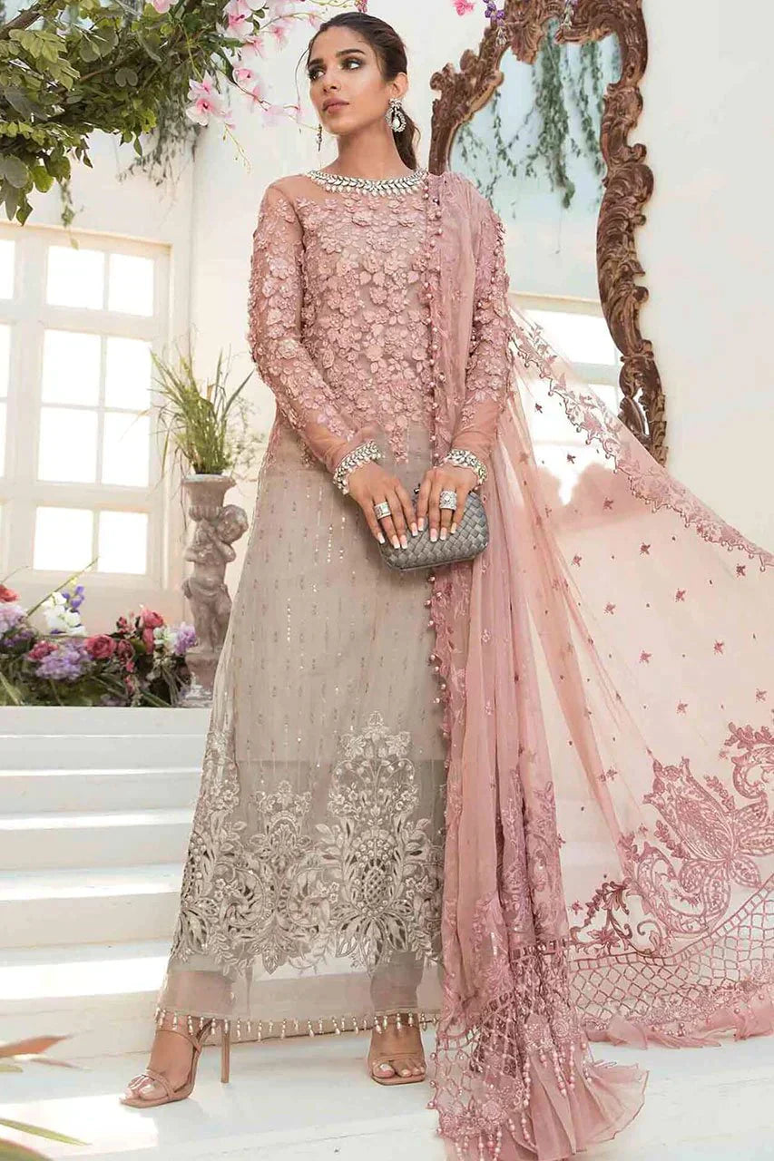 - With Pearls & 3D Flowers Hand Work