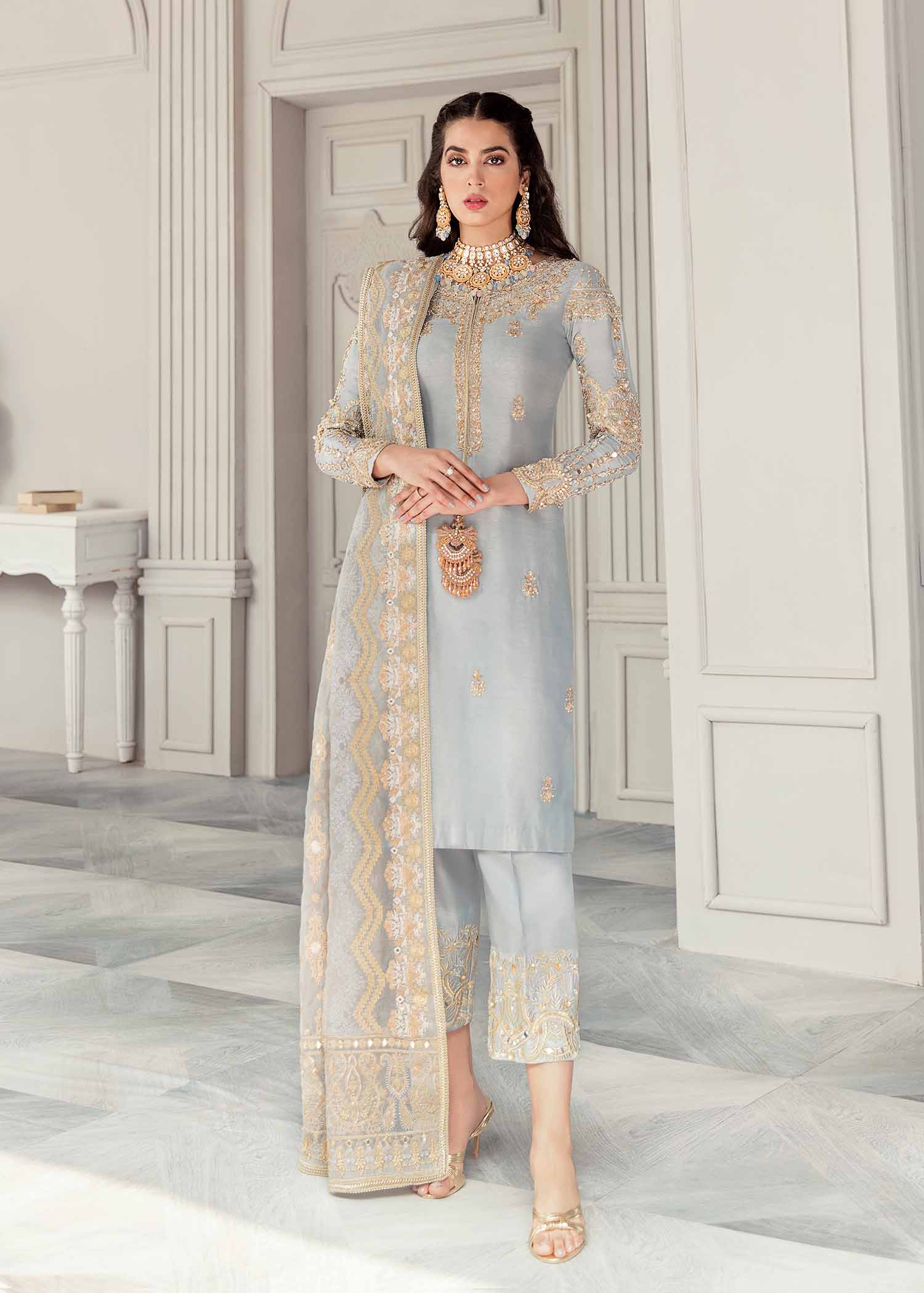 Mishal takes pride in its handcrafted party wear. Due to the delicate nature of our items, slight variations may occur (5-10%) in design, color, or embellishments. We recommend dry cleaning for all garments.