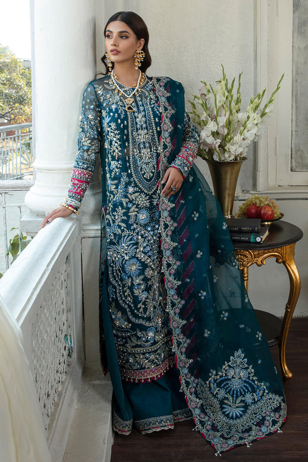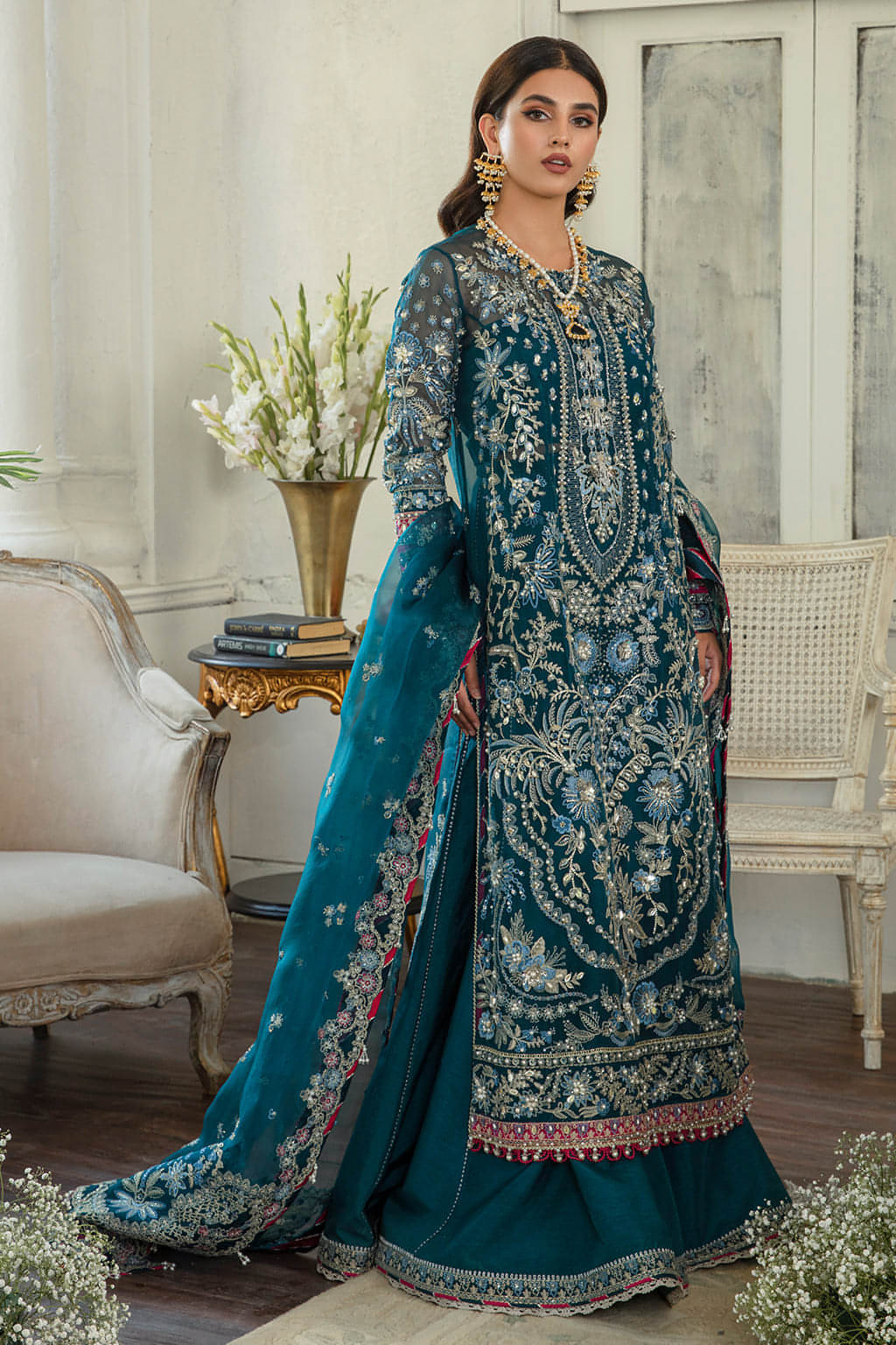 Mishal takes pride in its handcrafted party wear. Due to the delicate nature of our items, slight variations may occur (5-10%) in design, color, or embellishments. We recommend dry cleaning for all garments.