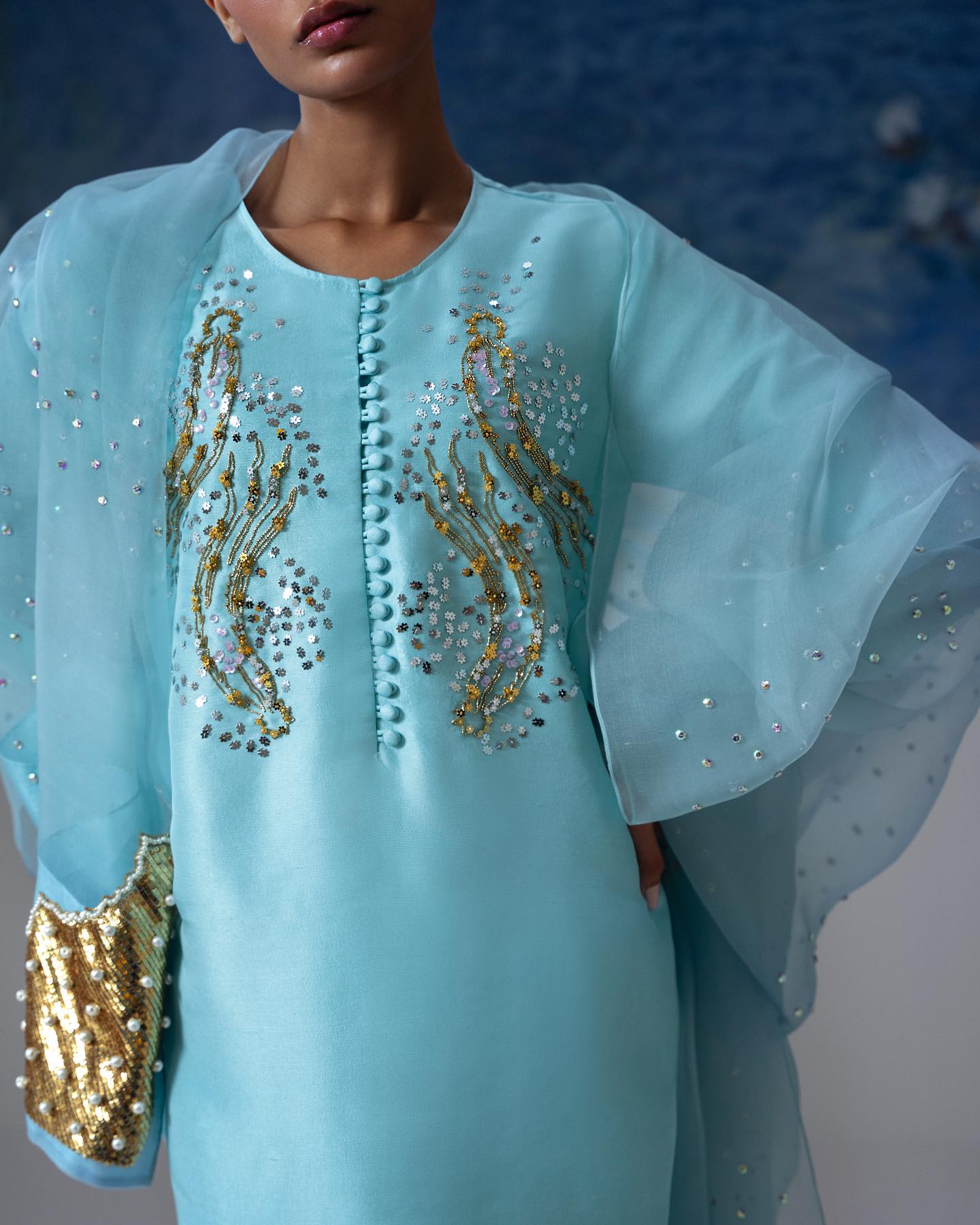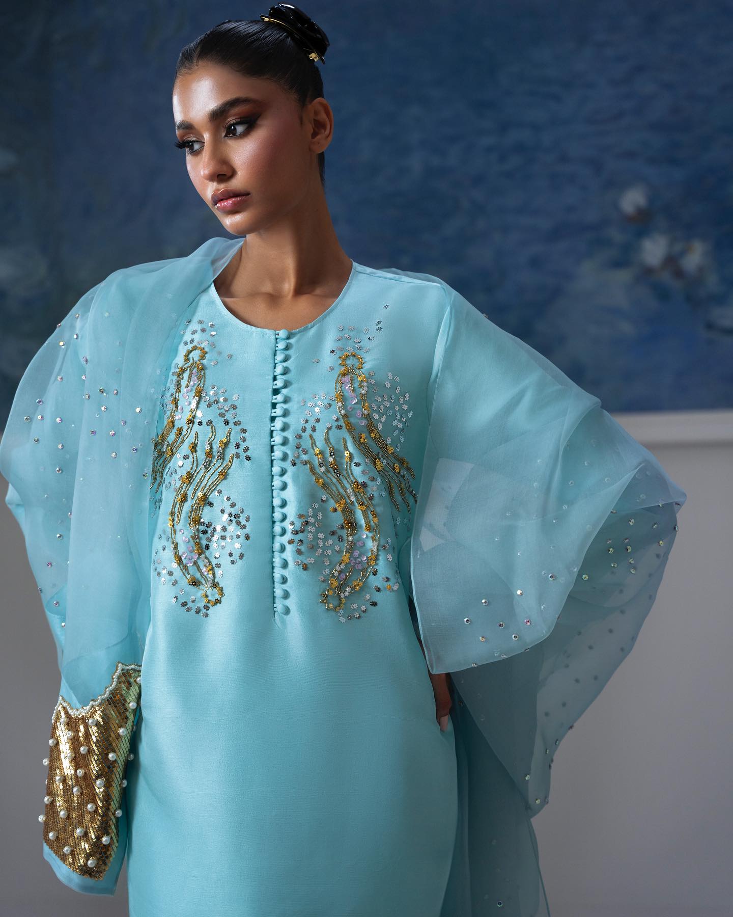 Mishal takes pride in its handcrafted party wear. Due to the delicate nature of our items, slight variations may occur (5-10%) in design, color, or embellishments. We recommend dry cleaning for all garments.