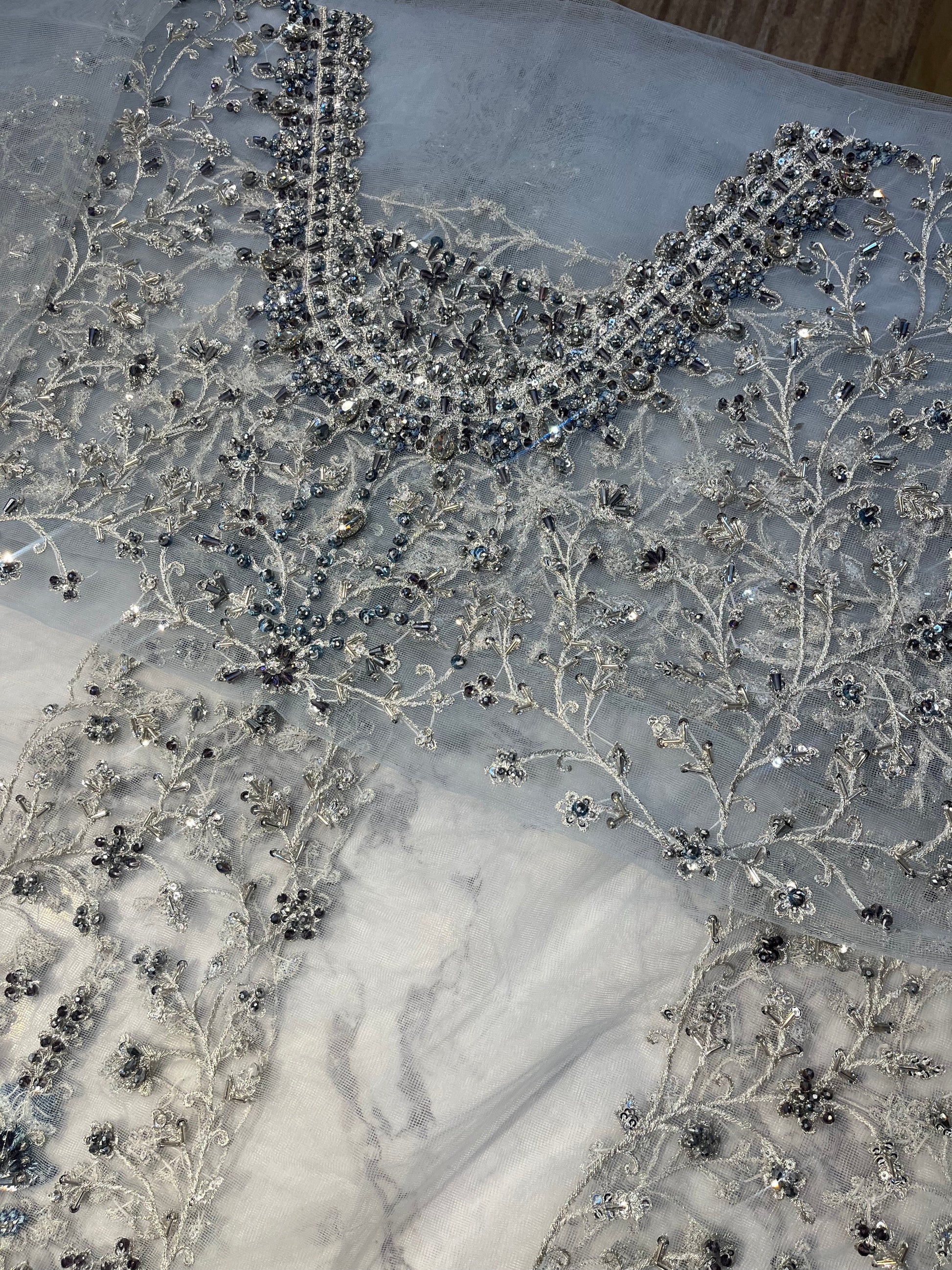 Mishal takes pride in its handcrafted party wear. Due to the delicate nature of our items, slight variations may occur (5-10%) in design, color, or embellishments. We recommend dry cleaning for all garments.