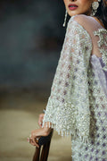 A stunning blend of elegance and sophistication, featuring an embroidered net shirt paired with luxurious raw silk trousers. The look is completed with an ethereal organza dupatta for timeless elegance.