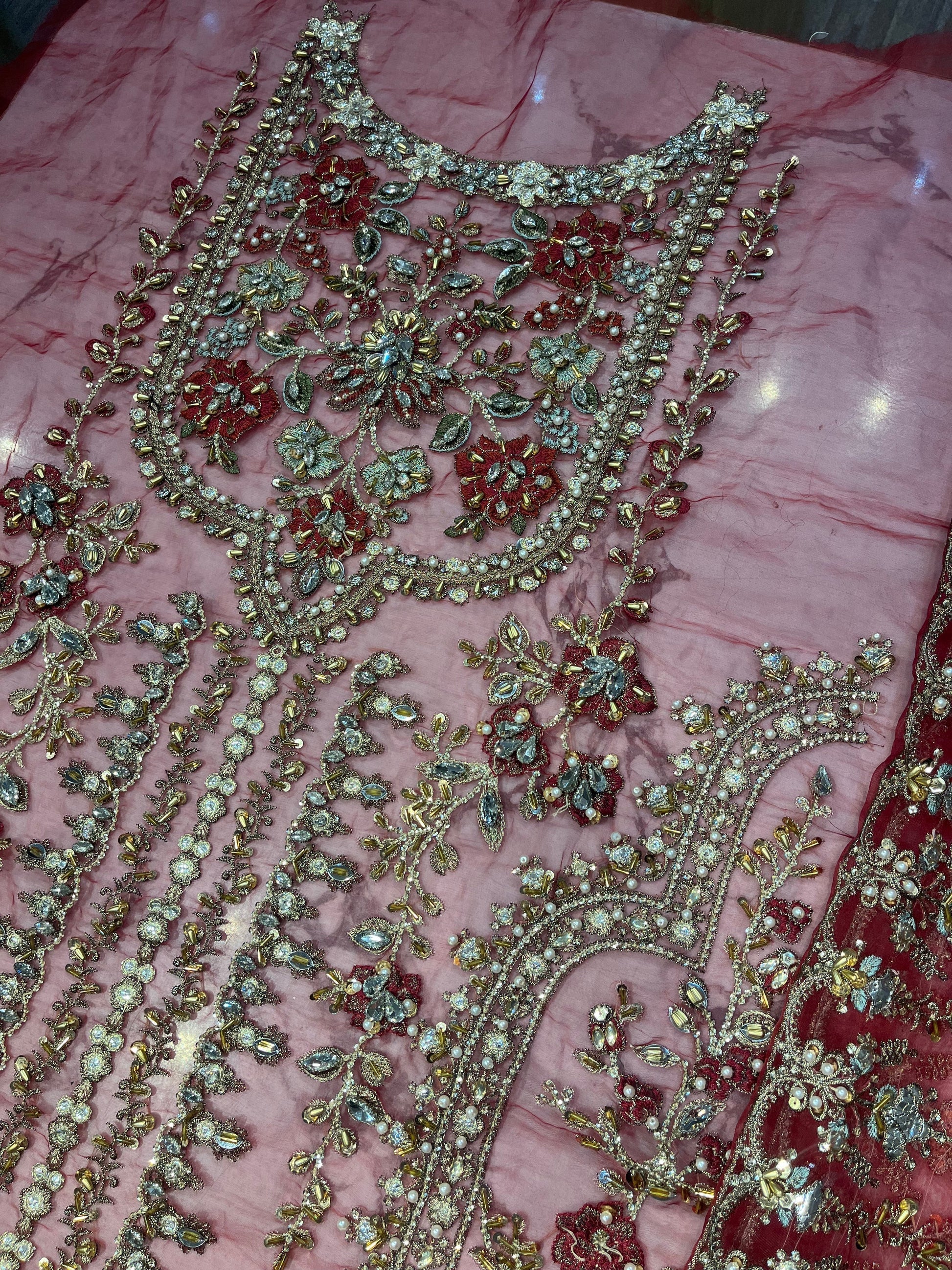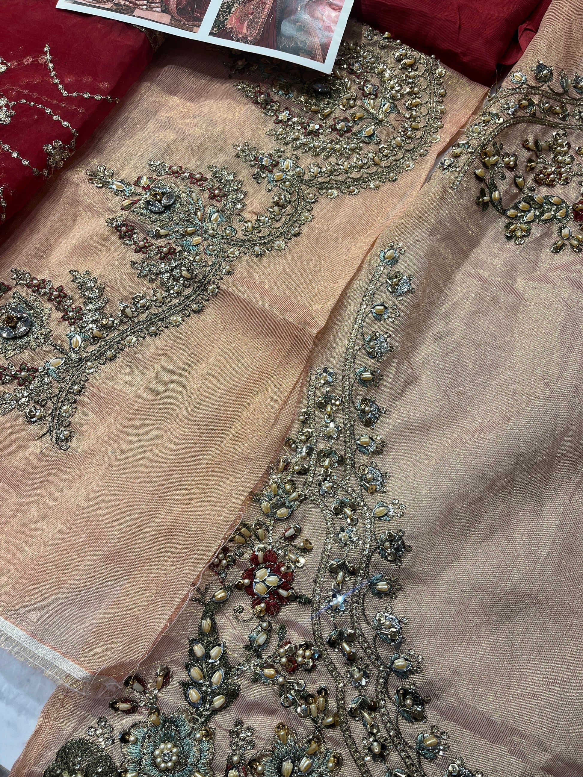 Embroidered Tissue Ghera With Luxury Hand Embellishment