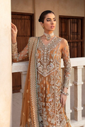 Rust never looked so ravishing! Introducing our breathtaking Naira festive formal dress, in the rich hue of rust, this gown is truly a delicate composition, with its attention to detail and exquisite craftsmanship paired with a gleaming sharara. From the moment you slip into this standout piece of Sarang bridals and Formals, you'll feel like the most beautiful and confident version of yourself. The gotta and dabka naqshi work on this dress adds a touch of sparkle, and the delicate pink and lilac threads used in the embroidery work add a feminine touch to the entire ensemble. Naira is the ideal choice for you to keep it trendy yet traditional.