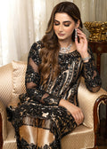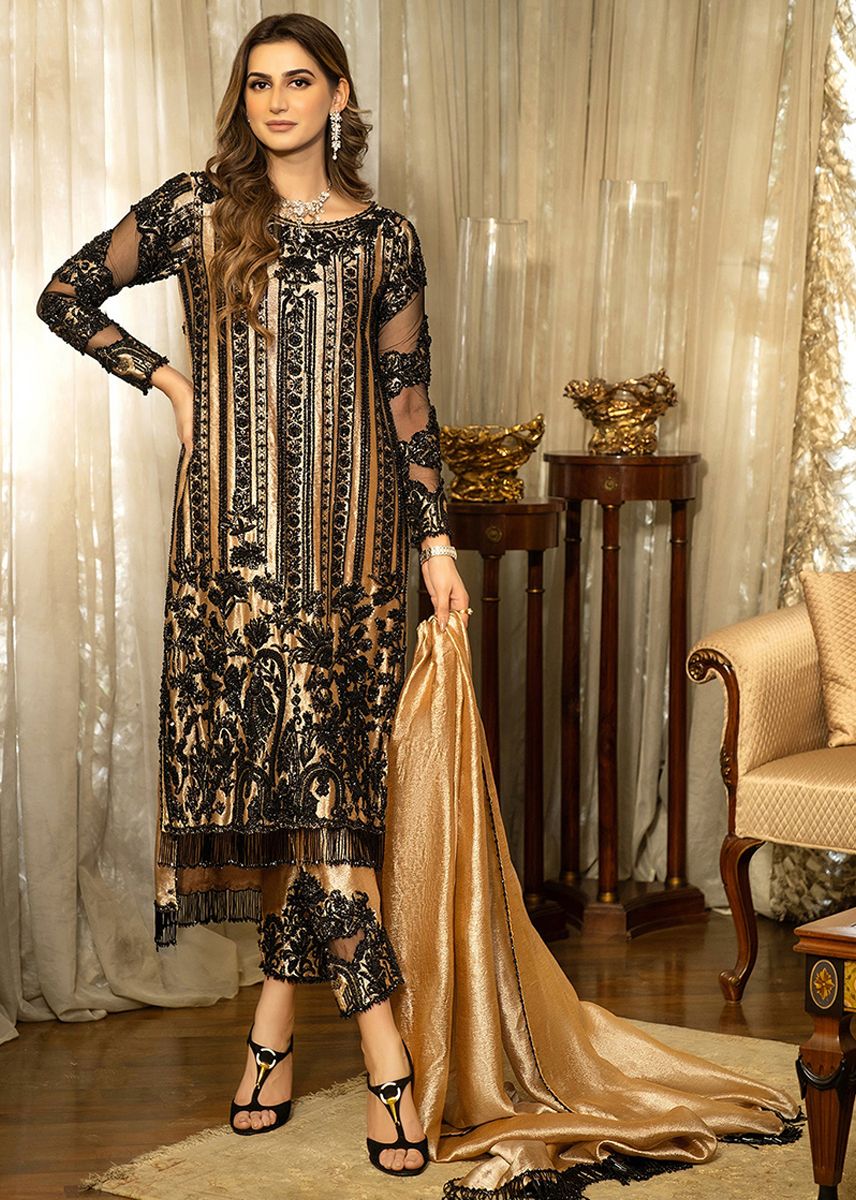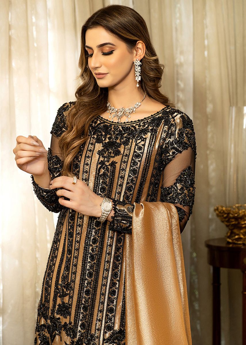 Description: A mélange of black and gilerty golden hues covered with intricate embellishments that wink at you from the day through the night.