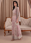 Step into a world of enchantment with our mesmerizing pink ensemble, a true epitome of elegance and luxury. Adorned with intricate silver embroidery on a soft pink base, this attire is a celebration of unparalleled artistry and refinement. Every stitch and embellishment is meticulously crafted, ensuring a breathtaking display of beauty from every angle. The delicately drooping sleeves add a touch of ethereal grace, enhancing the ensemble's whimsical charm. Paired effortlessly with sleek cigarette pants, this ensemble exudes timeless sophistication and captivates with its enchanting allure.